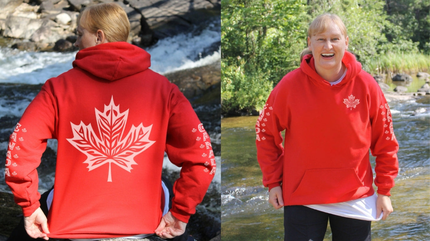 Celebrate Canadian heritage in style with this Canada Indigenous Maple Leaf Hoodie, a bold graphic sweatshirt that blends modern comfort with meaningful design. Featuring intricate Indigenous-inspired maple leaf artwork on the front and back, plus “Canada” printed down both sleeves, this hoodie makes a powerful statement of culture, pride, and identity.
